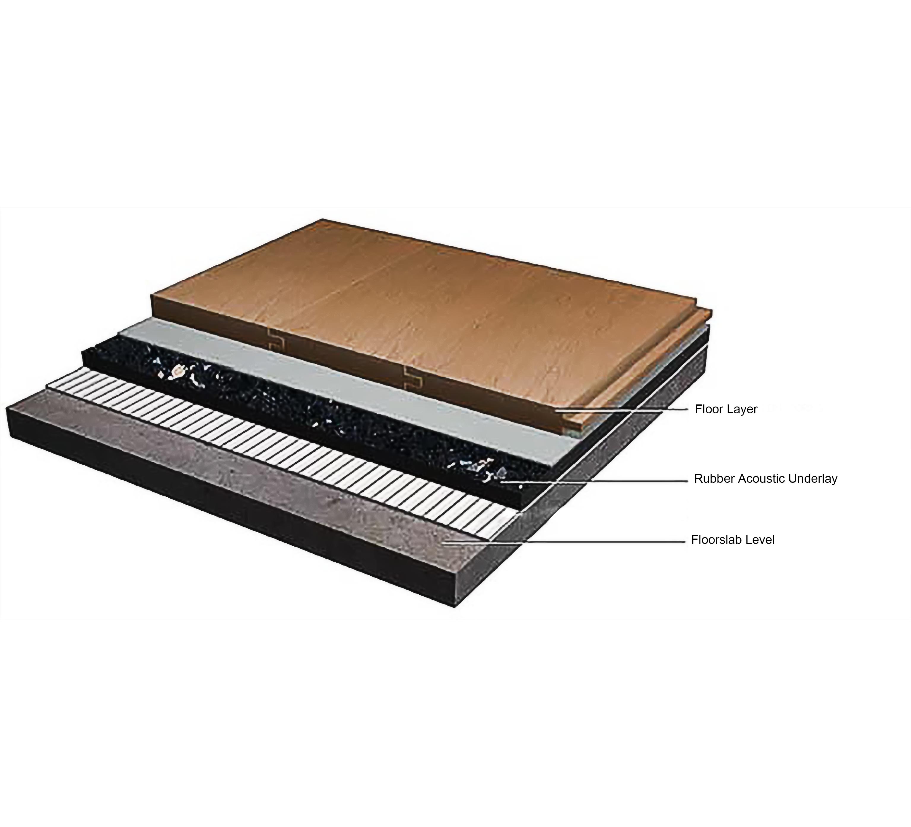 SOL ACOUSTIC rubber acoustic underlayer is designed to minimize impact transmission noise in floors and ceilings. Recycled rubber material provides a resilient layer within the flooring assembly to inhibit impact sound transmission.